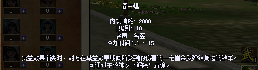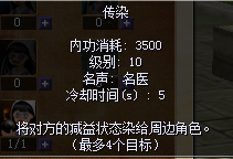 ![]() 学习等级:130级 需要内功/mp:2000 传染异常技能详情: ![]() 学习等级:10级 需要内功/mp:3500 阎王爆+传染使用详情: ![]() 第一步:先放阎王爆,然后再放传染技能,就可以传染3~5+的怪物身上。 第二步:用群攻技能去群怪物,从放阎王爆/传染技能开始,累计技能伤害值。然后5~8秒(范围性)爆炸! 例如:放了阎王爆+传染后,用技能打怪物伤害2000点,连续放第二次技能是2000点,那么爆炸的一瞬间就是4000点伤害. 附带小范围爆炸效果。 |